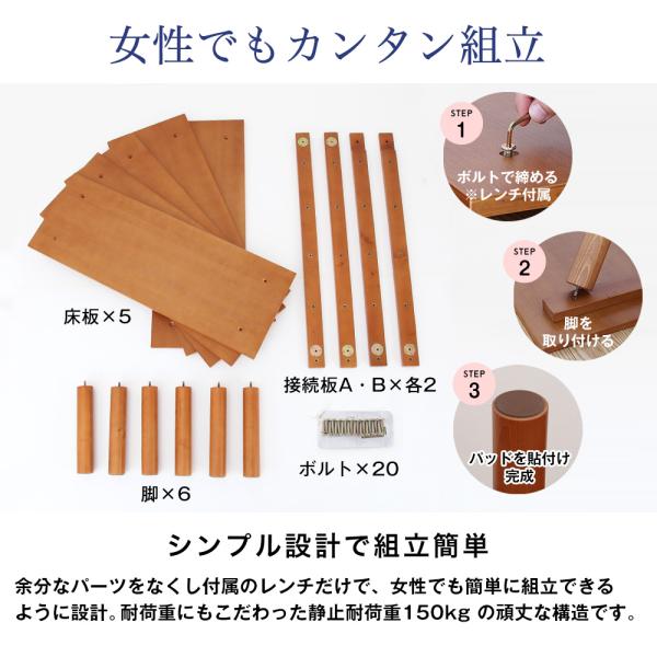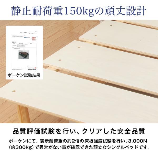 北欧 天然木 すのこベッド ニーナ 2段階 耐荷重 150kg 組立簡単 木製 ベット ベッドフレーム シングル ベッド シングルベッド