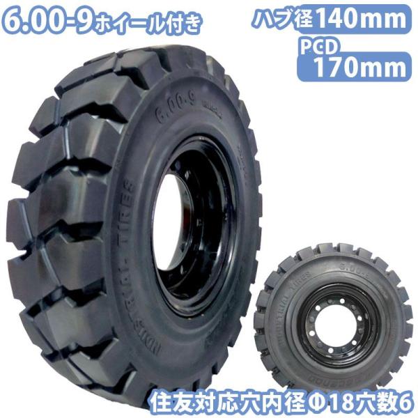 フォークリフトタイヤ フォークリフト タイヤ 600 9 フォーク タイヤ 重機 タイヤ リフト ノーパンクタイヤ 6.00-9 リム幅 4.00 穴数6 ハブ穴径140mm