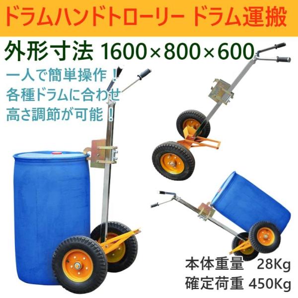 ドラム缶キャリー ドラム缶運搬車 耐荷重450kg 可動式爪 ドラム缶ドーリー 運搬車 台車 ドラムポーター ドラム台車 DE450