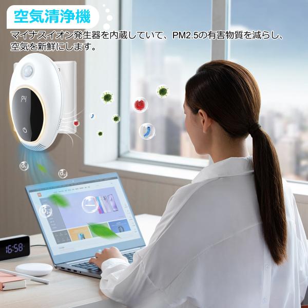 2個セール オゾン脱臭機 【人感センサー付き】 ペット トイレ 空気清浄機 介護 3in1多機能 強力消臭 除菌 小型 ト マイナスイオン発生器 ナイトライト付き 花粉