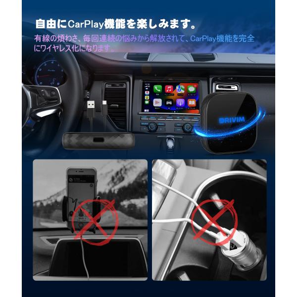 DRIVIM ワイヤレス CarPlay アダプター【業界起動スピードNO.1挑戦】純正な有線CarPlay搭載車用 カーナビ Googleマップ音楽Siribluetooth通話【技適取得済み品】