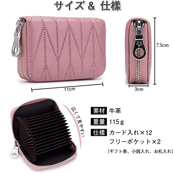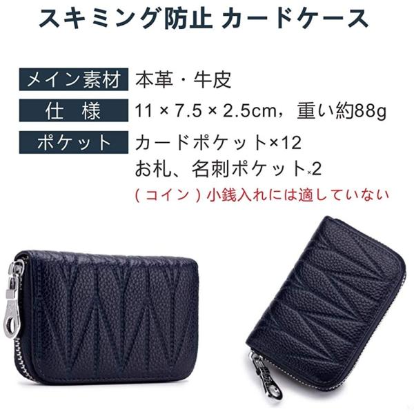 仕様:カード入れ×12 お札入れ×2 (1)内側にはポケットが最大24枚収納可能です(1ポケットには2枚収納可能)。(2)カードの上部がチラ見せになる仕様で、カードへ簡単アクセス。 (3)両サイドのポケットにはお札、小銭 、名刺、免許証、定期券、領収書等を収納でき、ちょっとした外出ならこれ一つで十分な収納力を備えている。