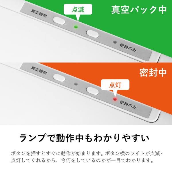 本体には「真空密封」ボタンと「密封のみ」ボタンの2ボタンのみで複雑な操作はいりません。
