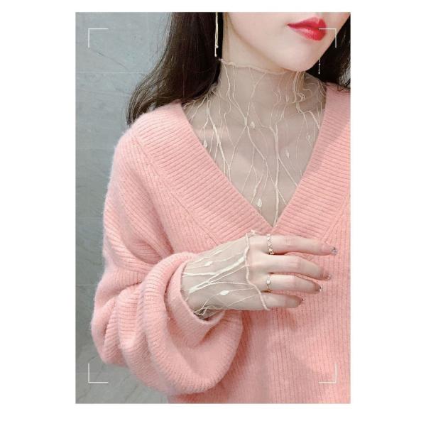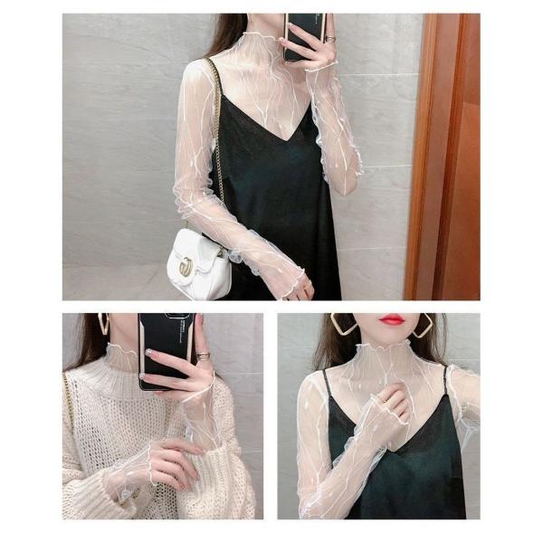 レースボトミングシャツ インナーメッシュ ボトミングシャツ レディース タートルネック【代引き不可】