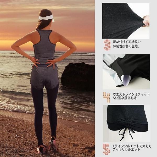 ラッシュガード 5点 セット フィットネス 水着 レディース 体型カバー タンクトップ レギンス 長袖 UVカット