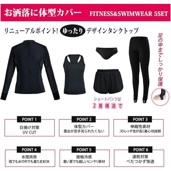 ラッシュガード 5点 セット フィットネス 水着 レディース 体型
