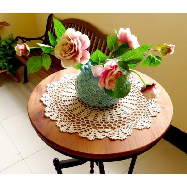 かぎ針編みレース綿糸テーブルマット LLサイズ 直径40cm