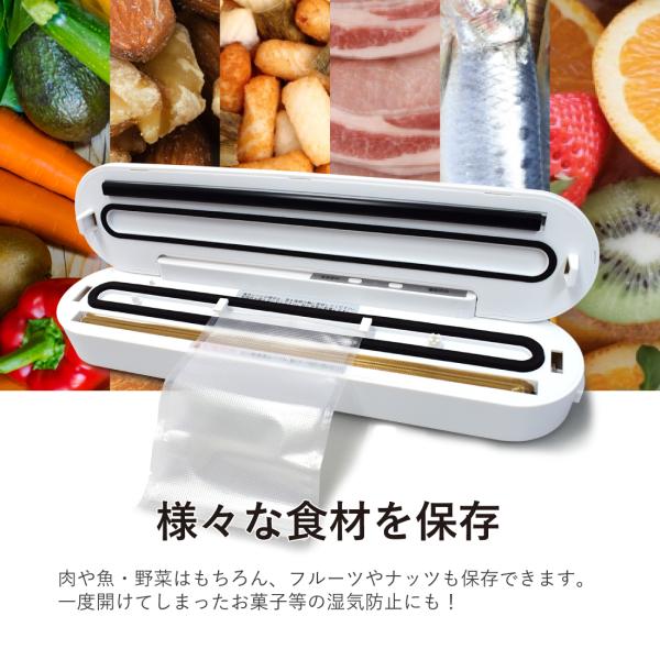 真空パック機 小型 シーラー 連続シール可能 フードシーラー機 家庭用 業務用 真空包装機 簡単操作 60Kpa吸引力 専用パック袋付き 日本語取扱説明書付き