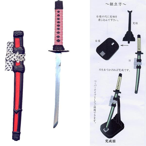 レターオープナー 忍者刀 (刀スタンド付)ペーパーナイフ 赤 メール便 送料無料