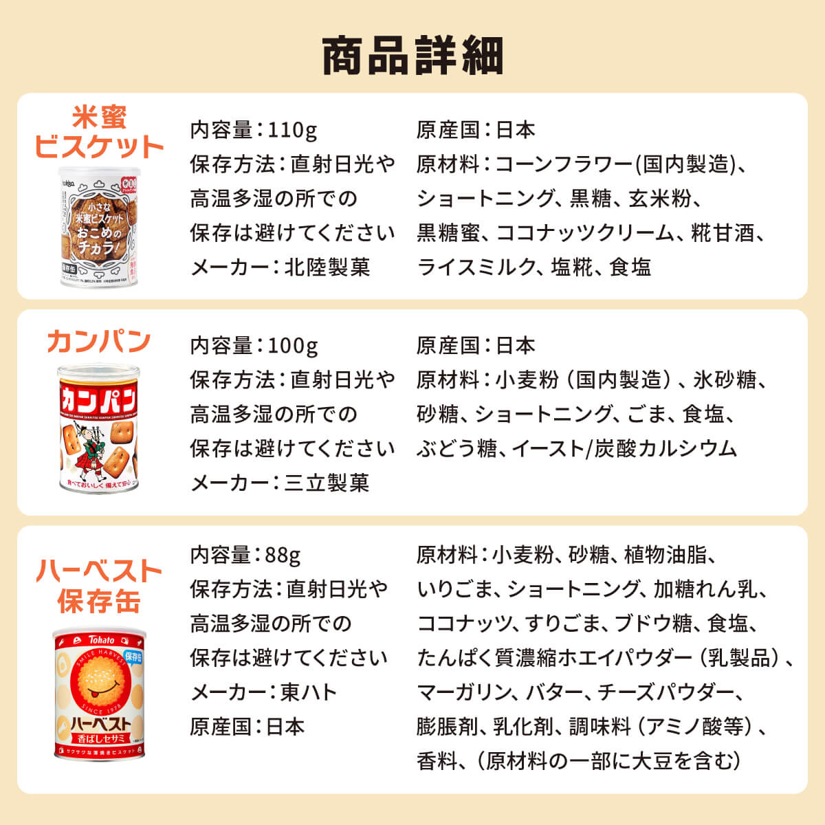 米蜜ビスケット、カンパン、ハーベスト保存缶のアソートセット!