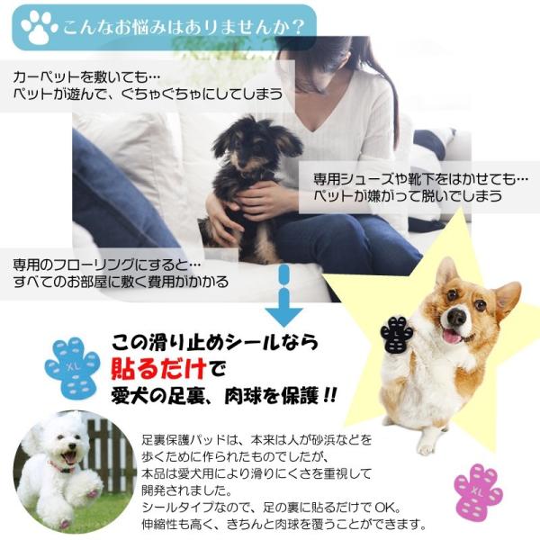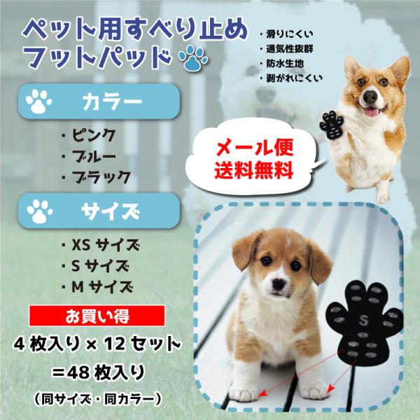【ネコポス対象】ペット滑り止めシール 4色 お買い得4枚入り12セット 48枚 x S M サイズ ピンク ブルー ブラック 肉球保護 ペット プレゼント