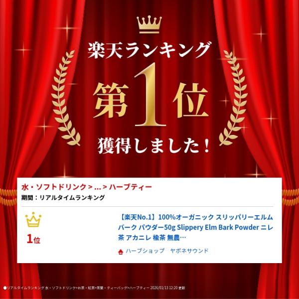 100%オーガニック スリッパリー エルム バーク パウダー ( ニレ茶 ) / Slippery Elm Bark Powder 50g Ulmus rubra アカニレ アカハルニレ 胃腸 喉 肌