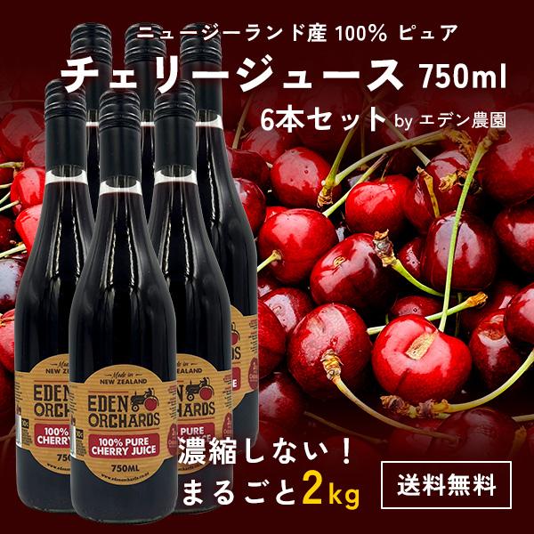 100% ピュア チェリージュース 750ml ×6本 エデン農園 チェリー2kg分使用 ニュージーランド産 非濃縮 無添加 ぐっすりすっきり習慣に