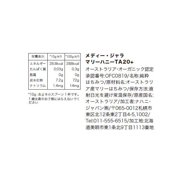 初回限定 マリーハニー TA 20+ 130g マヌカハニーと同様の健康活性力 オーストラリア オーガニック認定 蜂蜜 honey はちみつ 送料無料