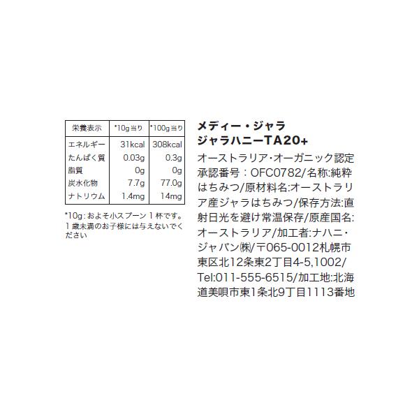 ジャラハニー TA 20+ 250g マヌカハニーと同様の健康活性力 オーストラリア オーガニック認定 はちみつ 蜂蜜 honey 送料無料