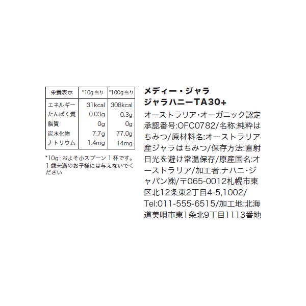 ジャラハニー TA 30+ 250g ×2本セット 500g マヌカハニーと同様の健康活性力 オーストラリア オーガニック認定 はちみつ 蜂蜜 送料無料
