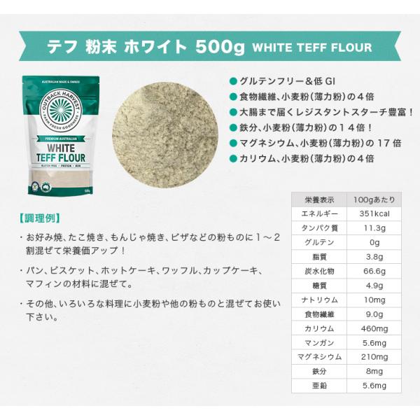 テフ 粉末 ホワイト 500g WHITE TEFF FLOUR スーパーフード グルテンフリー 低GI オーストラリア産