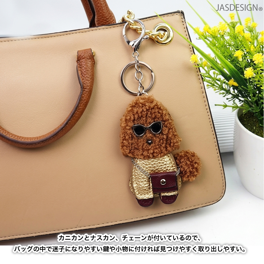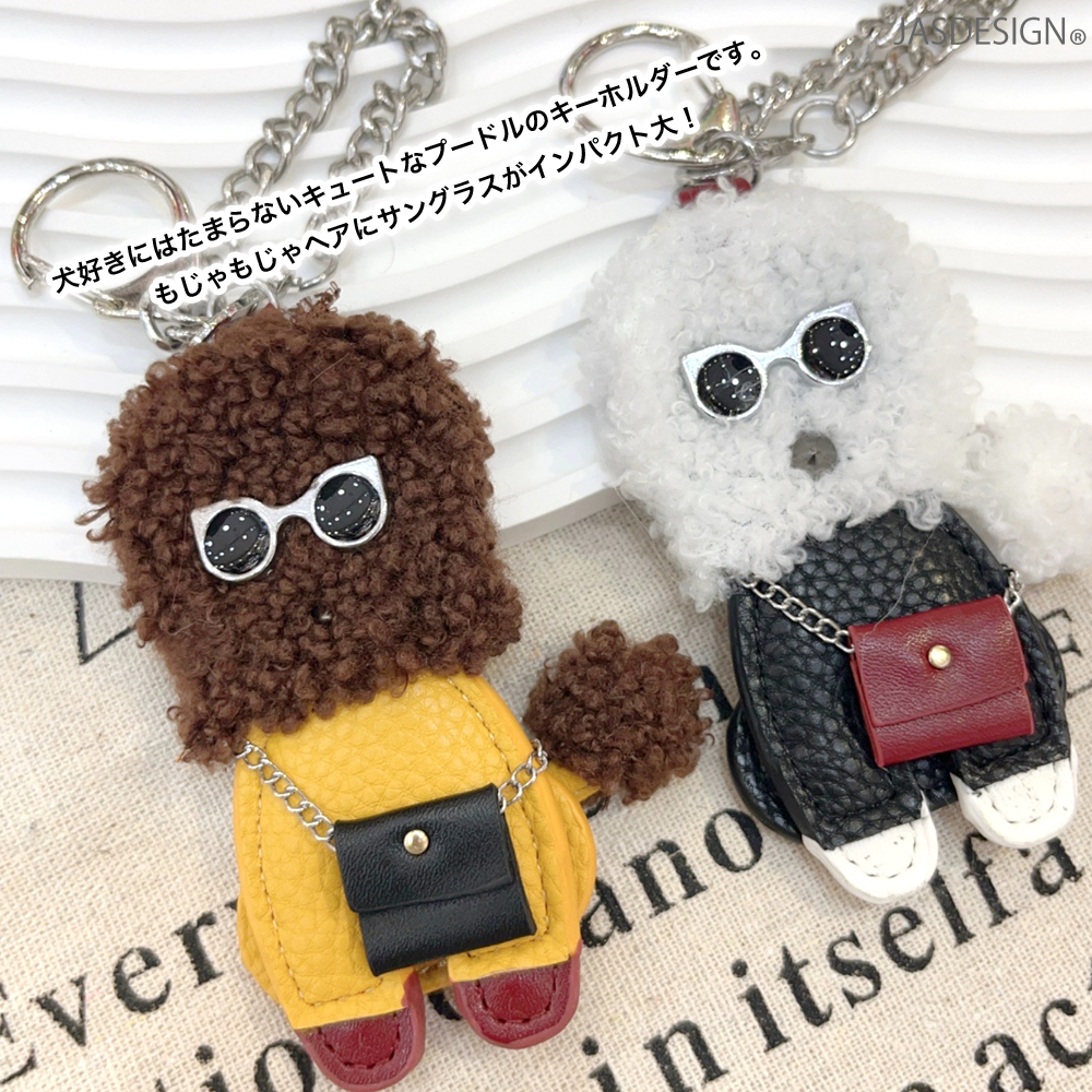 プードル バッグチャーム キーホルダー 犬 トイプー バッグアクセサリー レザー ボア もふもふ かわいい サングラス ドッグ 韓国 鞄 鍵 車 スマートキー JM-485