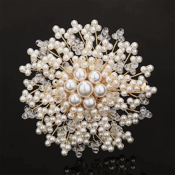 ブローチ 花 パール ゴールド レディース パールビジュー 真珠 フラワーブローチ クリスタル 花コサージュ 胸飾り 記念日 結婚式 卒業式