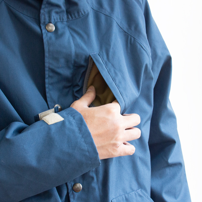 定番のマウンテンパーカーをシンプルに仕上げたこのパーカーは丈が短く、ポケットの形状や数量が調整され、春先や秋口にもさっと羽織れるパーカーになっています。袖口は調節のしやすいベルクロ仕様であったり、ボタンでもファスナーでも閉める事ができる比翼など、使いやすい仕様はそのまま。毎日着たくなってしまうようなフットワークの軽いパーカーです。