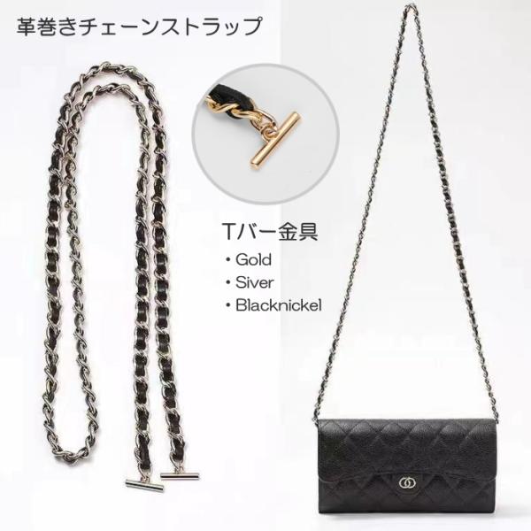 チェーンショルダーストラップ Tバー金具 レザー編み込み 取替交換用 バッグ 財布 斜め掛け クロスバック 単品 レディース ファッション小物