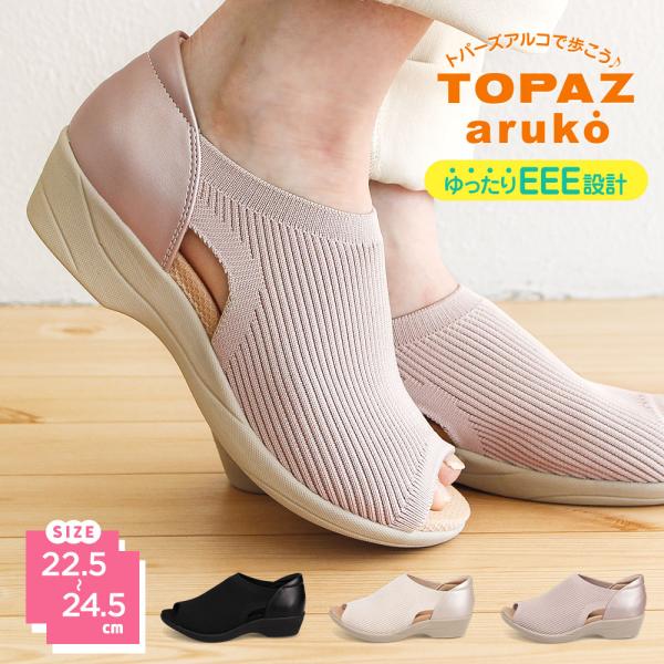 トパーズ アルコ 靴 シューズ コンフォート サンダル レディース 3e ミセス 母の日 黒 ブラック ピンク ゴールド ネイビー topaz 爆買