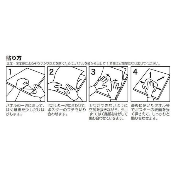 【商品説明】ポリスチレンの非常に細かい粒子を倍率14倍で低発泡させたものに接着剤をコーティングしたパネルです。表面のうす紙(はく離紙)をはがすだけでポスター、作品などを簡単にしかも美しく貼ることが出来ます。【仕様】●パネル●サイズ:A1●厚さ:3mm●寸法:910×605mm●重量(1枚あたり):300g●仕様:片面のり付●材質:ポリスチレン●注文単位:10枚 <ジェットプライス>