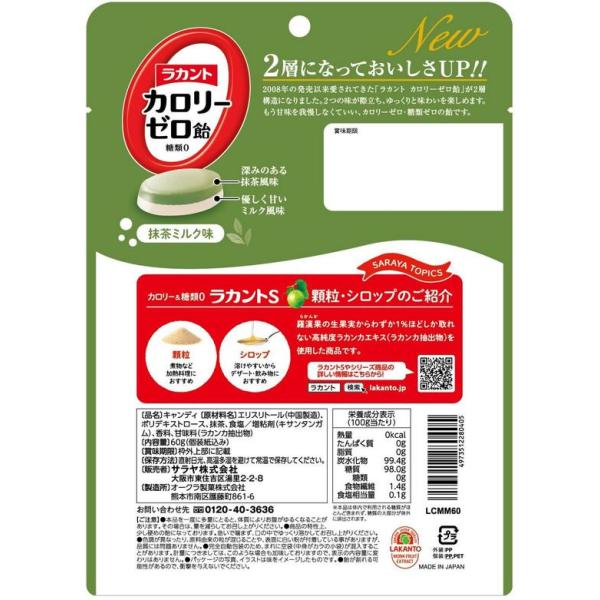 サラヤ ラカント カロリーゼロ飴 抹茶ミルク味60g(個装紙込み) バランス栄養食品 栄養補助食品 栄養ドリンク 健康食品