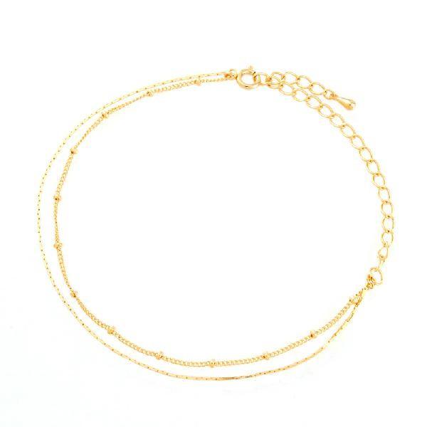 ★ランキング1位受賞★★レビューの多さが人気の証拠です★チェーンだけのシンプルさでも華やかな輝きが自慢のアンクレット。繊細なチェーンを使用して高級感にもこだわりました。どんなコーディネートにも◎ヘビロテ間違いなしの使いやすさです。今年も大人気のマキシ丈スカートやワンピはもちろんオシャレ上級者はロールアップしたジーンズやチノパンの裾からチラ見せ。足元にキラメキを与える高度な技でコーディネートの幅を幾重にも広げるお役立ちアイテムです。チェーン長さ:約16cmアジャスター:約8cmカラー:ゴールド、シルバー、ピンクゴールドおそろいのブレスレットも人気です★キラキラ2連チェーンブレスレット