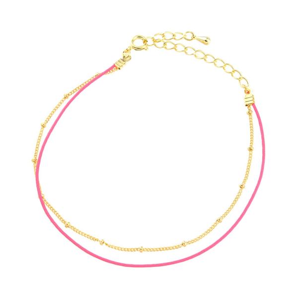 ★お肌に優しいニッケルフリー★金属アレルギーの原因となるニッケルをほぼ含まずアレルギーの方にも安心なメッキを使用しています。大切なお肌のこともちゃんと考えました。流行のネオンカラーが新鮮!人気のキラキラミニボールチェーンに表面をワックスコーティングした極細の蝋引き紐(ワックスコード)でネオンカラーをプラス。華奢なデザインの大人っぽい表情だから話題の蛍光カラー初心者でも足元のワンポイントに取り入れやすい!?きれいめカジュアルにオススメ!HAPPYオーラで気分も明るく、足元も軽やかに。チェーン長さ:約18cm蝋引き紐長さ:約17cm蝋引き紐太さ:直径約1mmアジャスター長さ:約5cmネオンひも素材:蝋引きカラー:ネオンイエローネオンピンクネオングリーンネオンホワイト