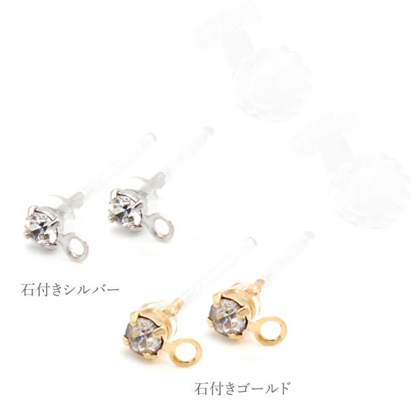 ピアス ポスト 樹脂 2ペア 単品 ハンドメイド パーツ 針 シリコン キャッチ付き 金属アレルギー 日本製 ゴールド シルバー ピンクゴールド