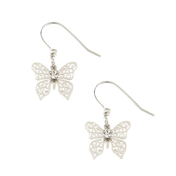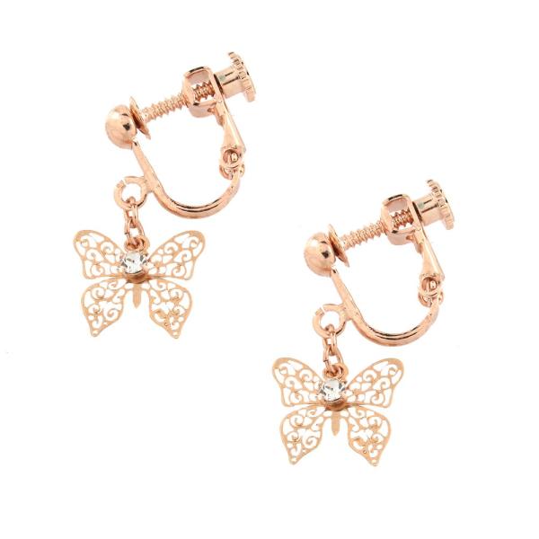 ピアス 透かし バタフライ 蝶々 スワロフスキー イヤリング ピアス 日本製 e0029