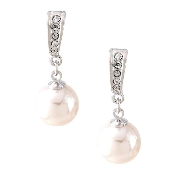 スワロフスキーを散りばめた金具に大きめパールが揺れる、上品なイヤリング。