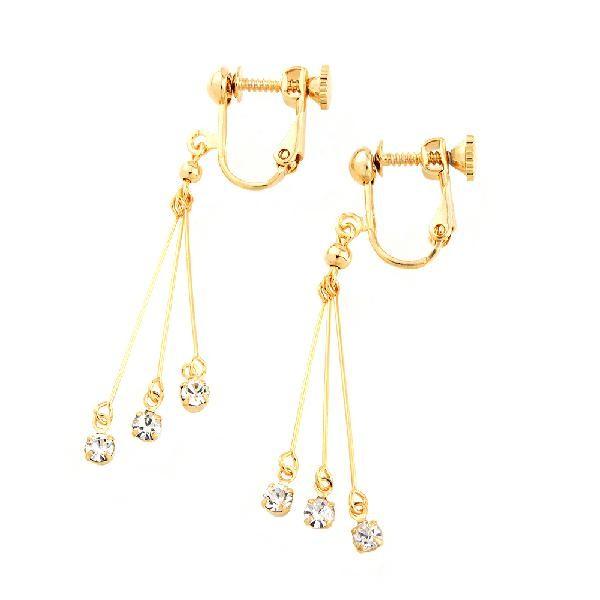 イヤリング ピアス 下がり ストーン 細線 キラキラ 3連 レディース ゴールド シルバー ピンクゴールド ぶら下がり シンプル 上品 ギフト プレゼント 日本製