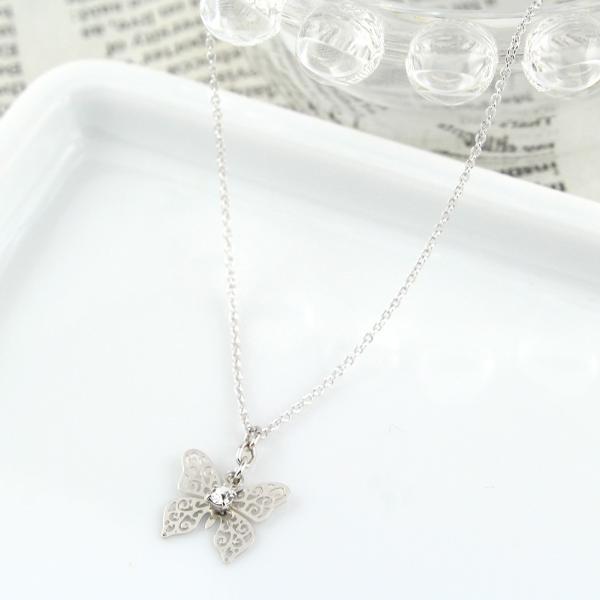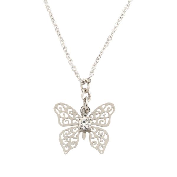 ネックレス 透かし バタフライ 蝶々 スワロフスキー ネックレスニッケルフリー 金属アレルギー対応 日本製 n0020