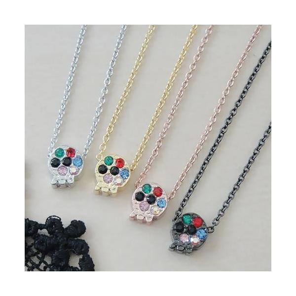 ネックレス レディース マルチカラー ドクロ スカル ネックレス 日本製