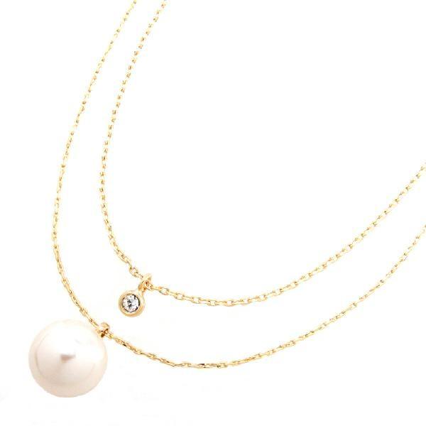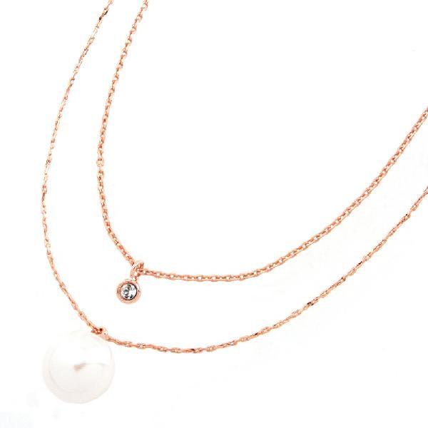 ★お肌に優しいニッケルフリー★金属アレルギーの原因となるニッケルをほぼ含まずアレルギーの方にも安心なメッキを使用しています。大切なお肌のこともちゃんと考えました。上品で柔らかな輝きが魅力的な大粒パールを主役に人気のワンストーンスワロフスキーをプラス。女性らしさ溢れるデザインに仕上げました。高級極細キラキラチェーンと職人技の4面ダイヤカットキラキラ極細チェーンを使用した2連ネックレス。贅沢な輝きにうっとり。本物のジュエリーのような繊細な作りが自慢です。チェーン長さ:約36.5cm+アジャスター約5cmパールサイズ:直径約8mmストーントップサイズ:直径約5mmパール素材:プラスチックストーン素材:スワロフスキーチェーン素材:ニッケルフリーメッキカラー:ゴールド・シルバー・ピンクゴールド大好評です♪お肌に優しいニッケルフリーシリーズ