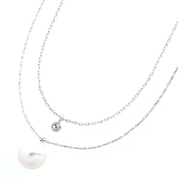 ネックレス ニッケルフリー 金属アレルギー対応 ワンストーンスワロフスキー&パール 2連 フォーマル 日本製