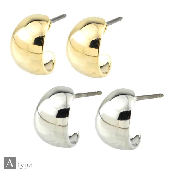 ピアス ハーフサークル ドロップ G型 スタッド チタンポスト ピアス ゴールド シルバー ニッケルフリー 金属アレルギー対応 シンプル 日本製