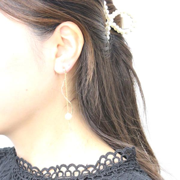 イヤリング ピアス レディース バロック 淡水パール 真珠 スパイラル らせん チェーン ニッケルフリー スワロフスキー 20代 30代 40代 日本製