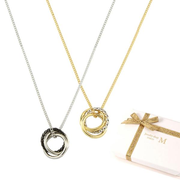 ペア ネックレス BOXに入れてお届け 3連リング ペアネックレス ニッケルフリー 金属アレルギー対応 日本製 pn0011