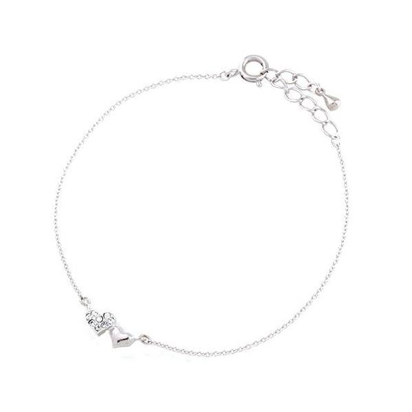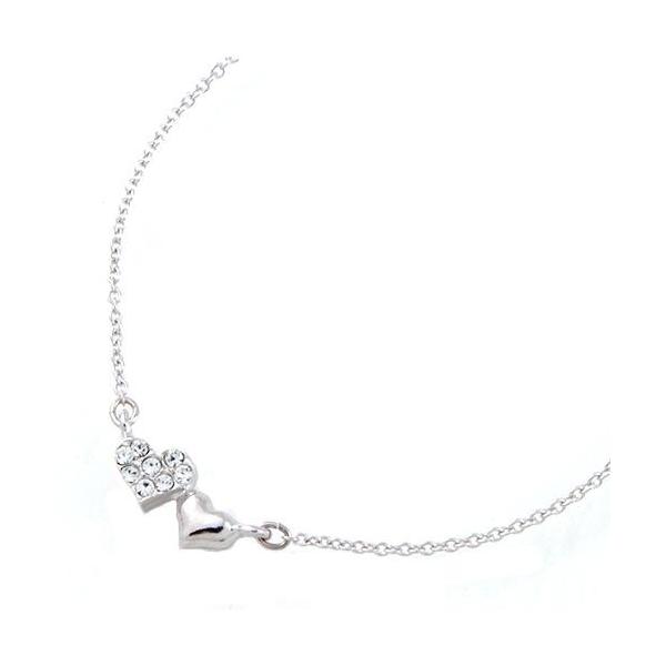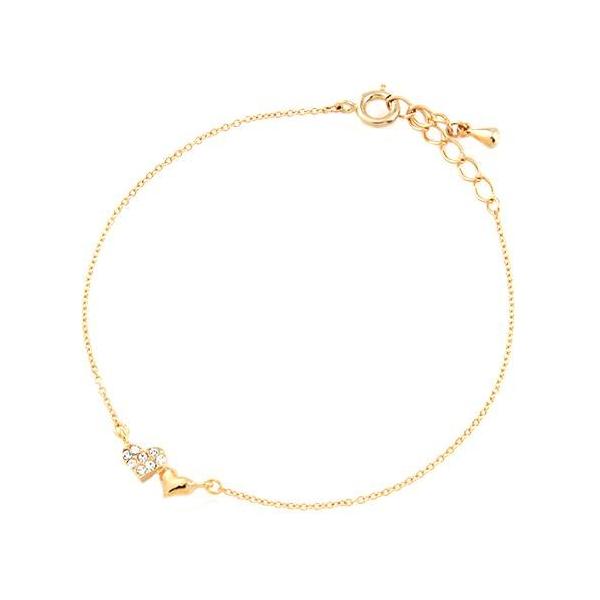 ブレスレット ニッケルフリー 金属アレルギー対応 パヴェ&メタル ダブルハートブレスレット 日本製 v4132
