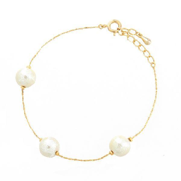 ブレスレット トリプルコットンパール 高級 極細 キラキラチェーン ニッケルフリー 日本製