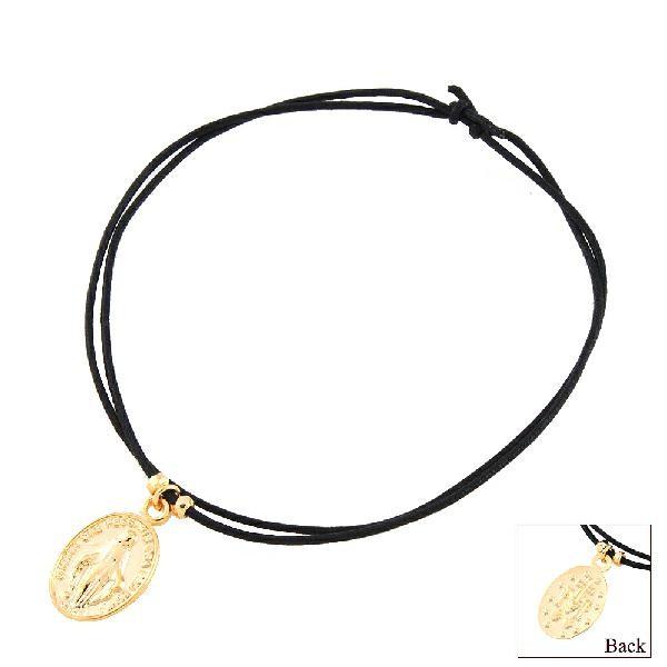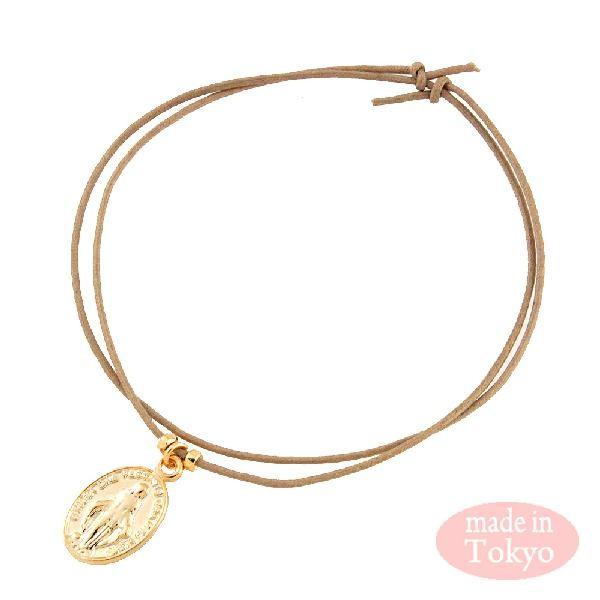 2Way メンズ レディース 聖母マリアメダイ 紐 ブレスレット アンクレット ニッケルフリー 金属アレルギー対応 日本製