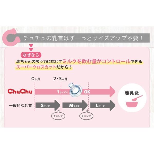●新生児から卒乳までサイズアップ不要のチュチュシリコーンゴム製乳首付