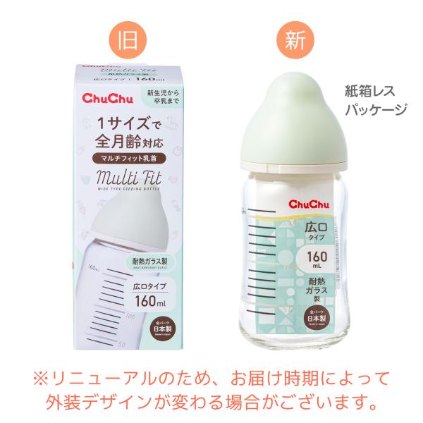 哺乳瓶 マルチフィット 広口タイプ 耐熱ガラス製哺乳びん 160mL 日本製 チュチュ ChuChu ジェクス 爆買
