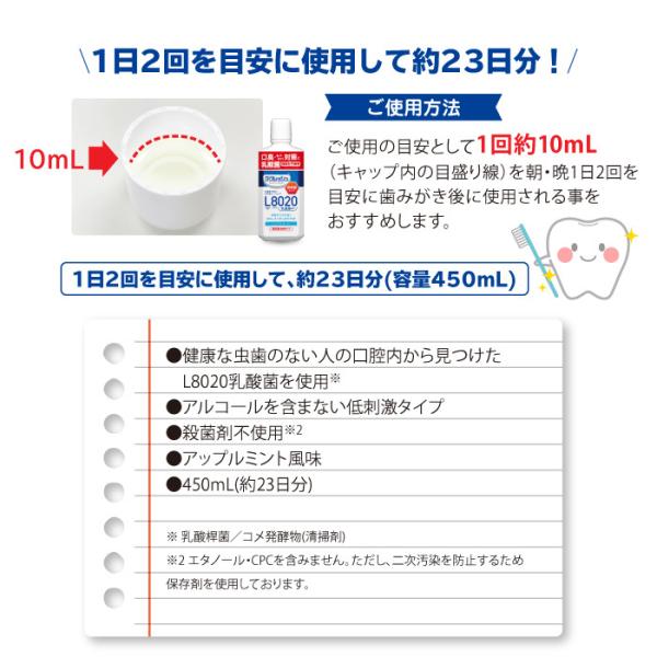 L8020乳酸菌使用、アルコールを含まない低刺激の洗口液が大容量になって新登場。