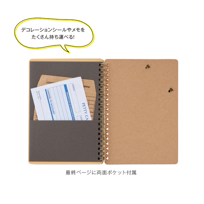 ・ペンホルダーやしおり代わりにも使えるゴムバンド、最終ページには便利な両面ポケットが付属