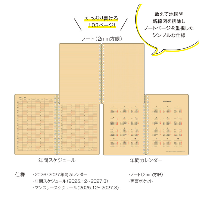 装丁 :ノート(2mm方眼) / 両面ポケット / ゴムバンド