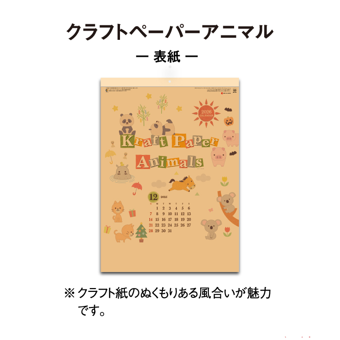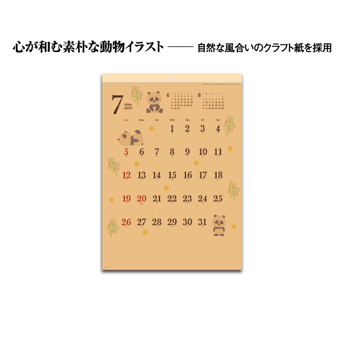 カレンダー 2026年 壁掛け クラフトペーパーアニマル SG241 カレンダー 2026 壁掛け おしゃれ クラフト紙 イラスト パンダ 動物 スケジュール 258015